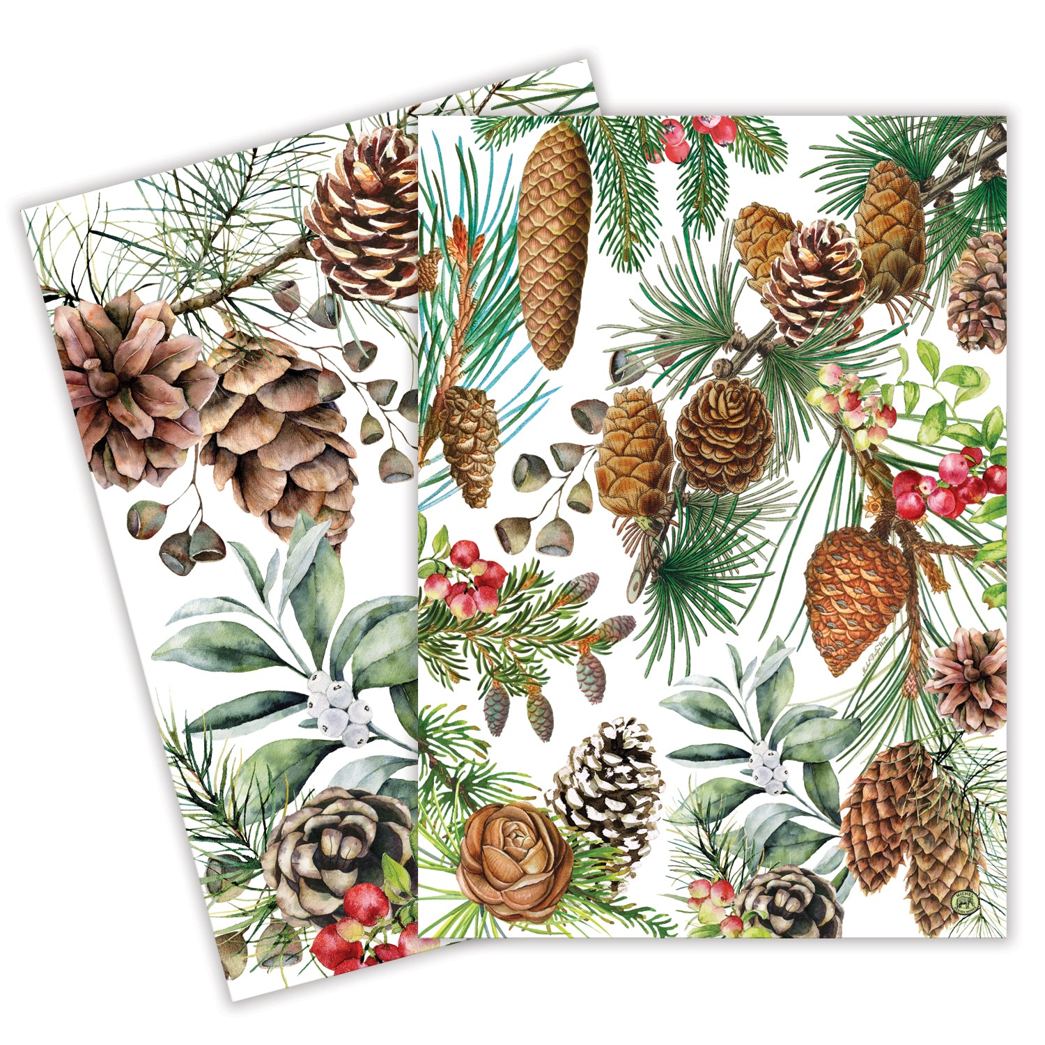 - Print: A dazzling mix of greens, pinecones, and berries for a perfect complement to any holiday décor