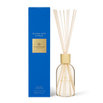 A clever flameless scent solution for uninterrupted ambience. Like a dip in the Med sea, with amber and peach balanced by woods, lavender and moss.