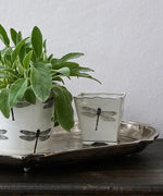 This stylish square pot holder is adorned with black and white dragonflies, perfect for indoor and outdoor use.