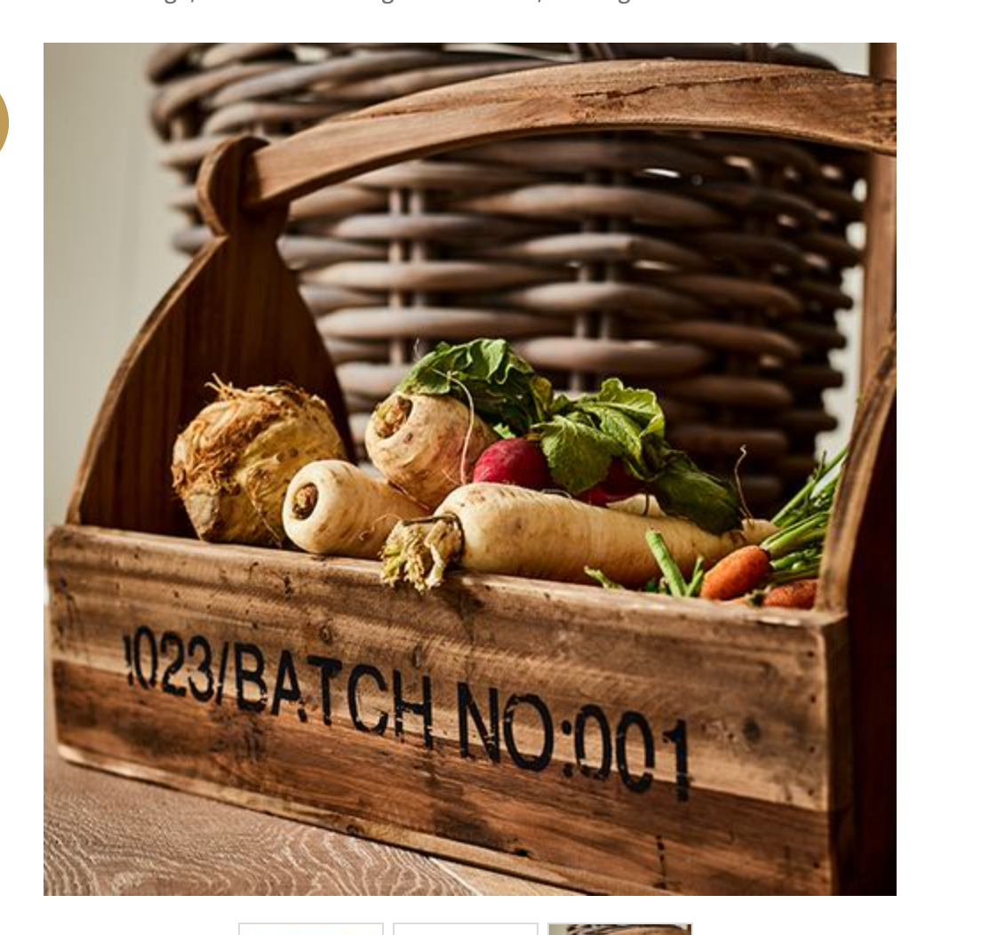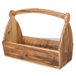 Traditional wood caddy with handle has a multitude of uses. Use outside to hold gardening tools, perhaps fill with your favourite wine, or use to hold your root vegetables.