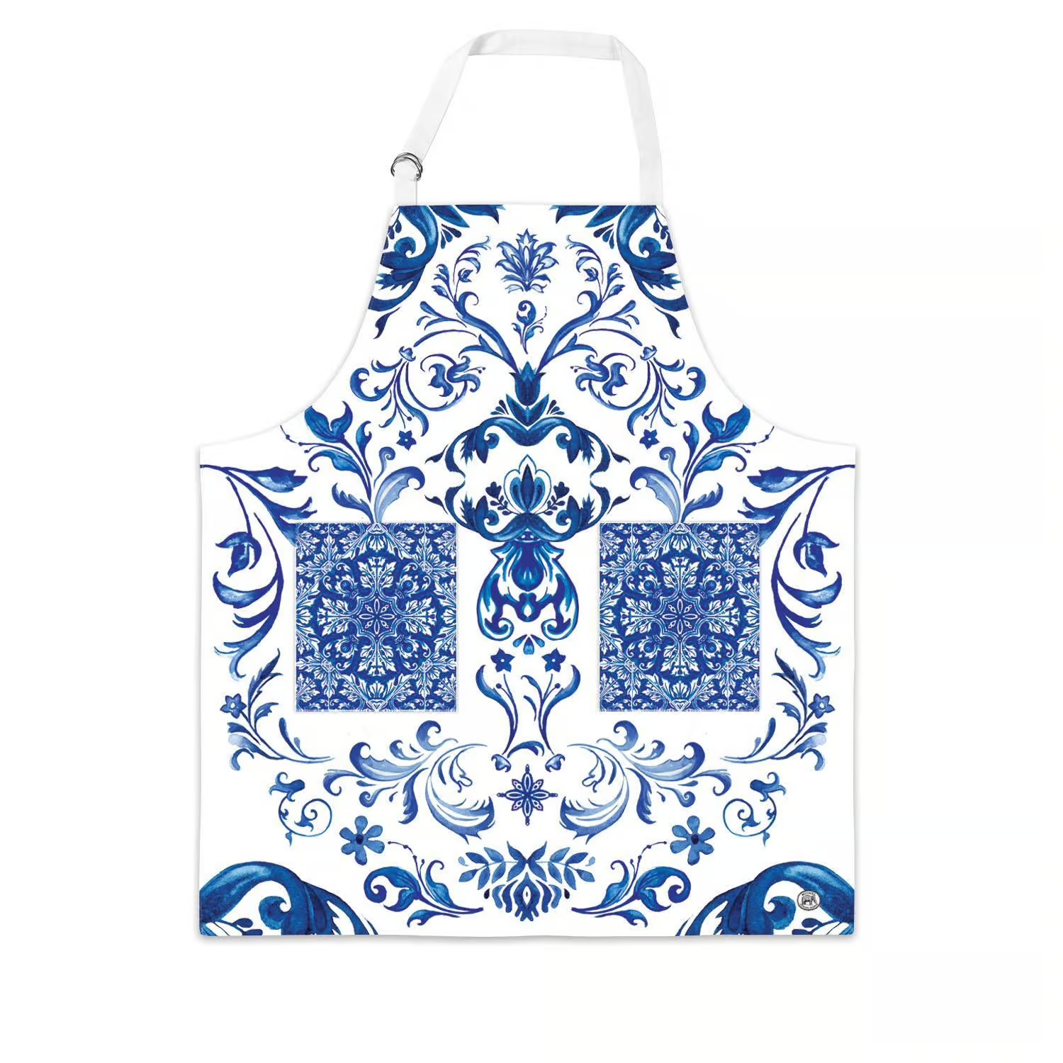 Everyone will delight in Michel Design Works Indigo Seas Apron with Pockets. Here’s an Apron any chef would be proud to wear. It comes in several sophisticated designs and is 100% cotton for easy care. Just tie it at the waist and use the metal double D-rings to adjust the neck. In addition, it is a great accessory that coordinates with the tea towels and double oven glove. It also makes a great gift, perfect all year round.