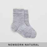 NEWBORN NATURAL - Bunny - Light grey marle zig zag textured merino wool crew socks for babies
