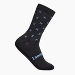 Baltic - Black merino wool with pale blue crosses. Crew socks for Men.