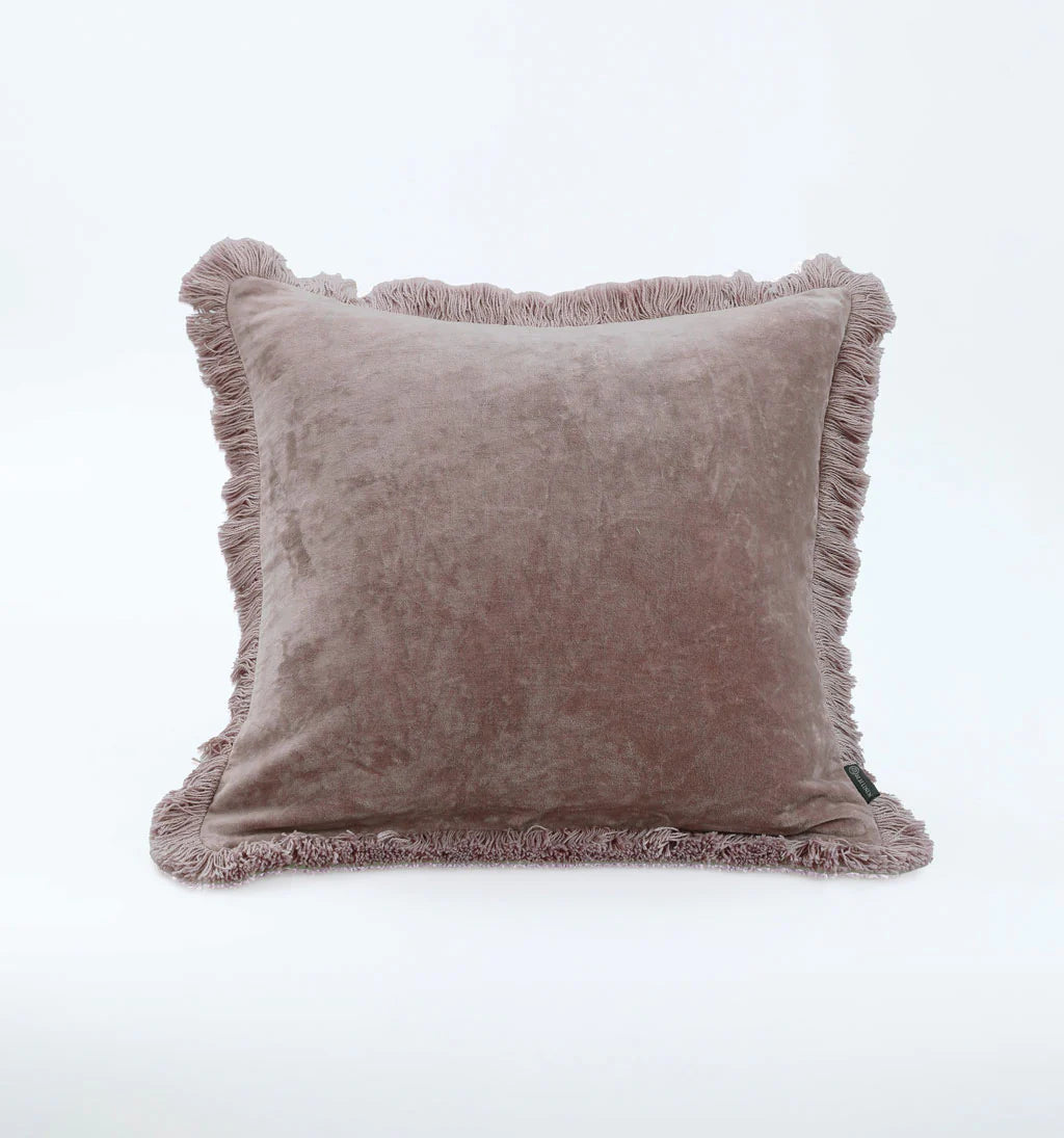 Our luxurious feather and down filled Sabel Cushions are constructed expertly from pure cotton velvet with an elegant fringe edge and are available in a selection of colours and in two sizes. The 50 x 50cm cushion has a fringe on four sides with linen cotton reverse side.