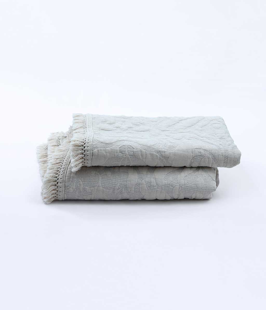 Beautifully soft and lightly textured, an organic quilted pattern and fringed edges adorn the Mayen Throw. Elegant and generous in size, the Mayen Throw is versatile and perfect for living and bedroom spaces.