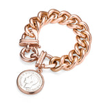 Crafted with care, fashion heavy link bracelet with coin pendant. Rose gold colour.