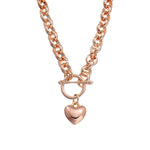Crafted with care, fashion belcher link necklace with heart fob. Colour rose gold.