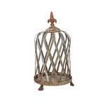 Stunning rustic iron dome with criss cross detailing on round base. Use to display plants, birds nests, candles or anything you can imagine around the home.