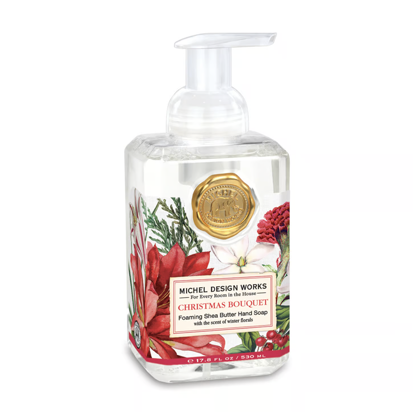 Everyone will delight in Michel Design Works Christmas Bouquet Foaming Hand Soap. The generous size of our foaming hand soap proves you can offer great value without sacrificing quality. In addition, it contains luxurious shea butter and aloe vera, for gentle cleansing and moisturizing. It creates a soft lather that will gently cleanse, nourish and, most importantly, condition your skin. It also makes a great gift, perfect all year round.