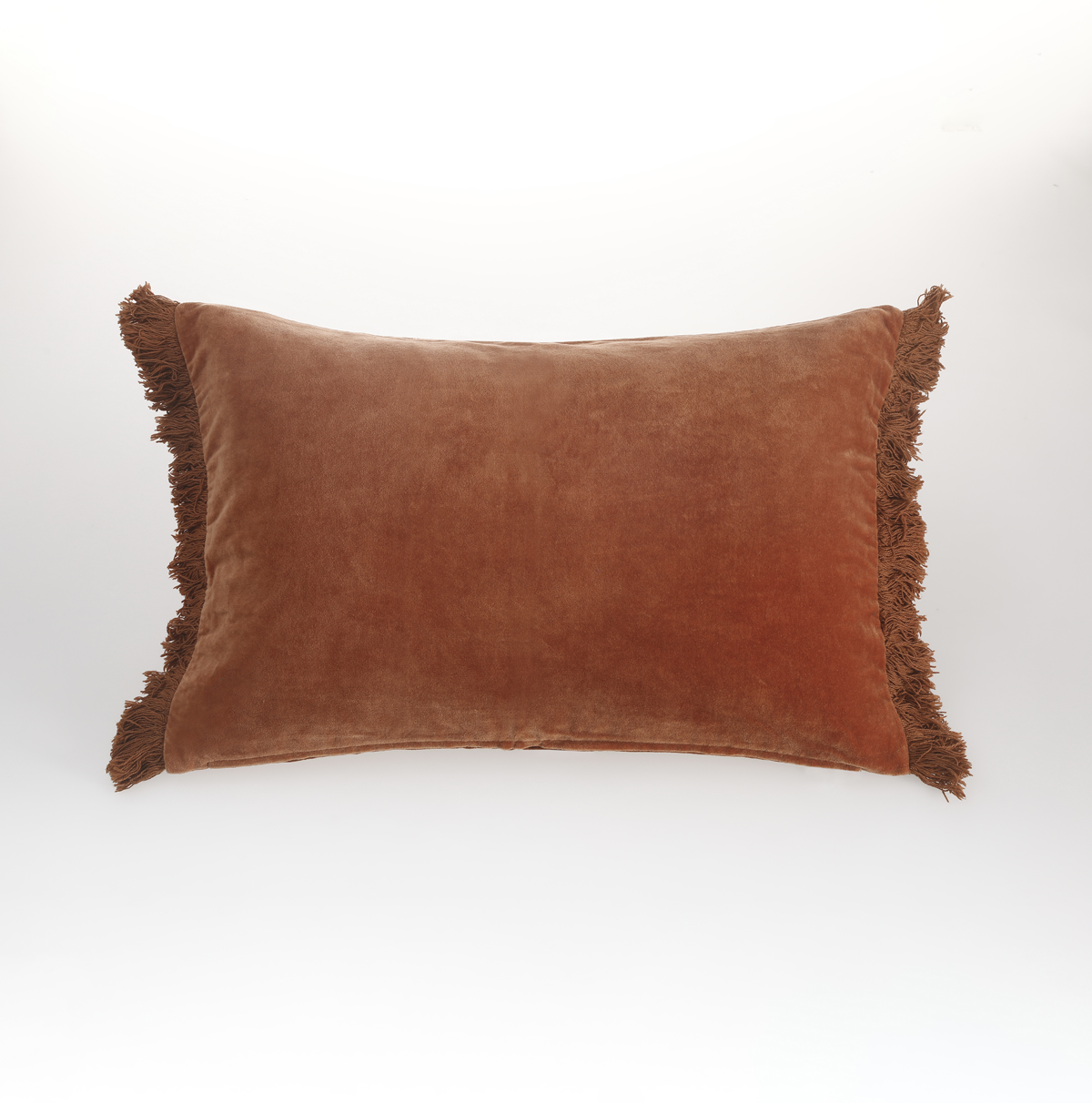 Our luxurious feather and down filled Sabel Cushions are constructed expertly from pure cotton velvet with an elegant fringe edge and are available in a selection of colours and in two sizes. The 50 x 50cm cushion has a fringe on four sides with linen cotton reverse side.